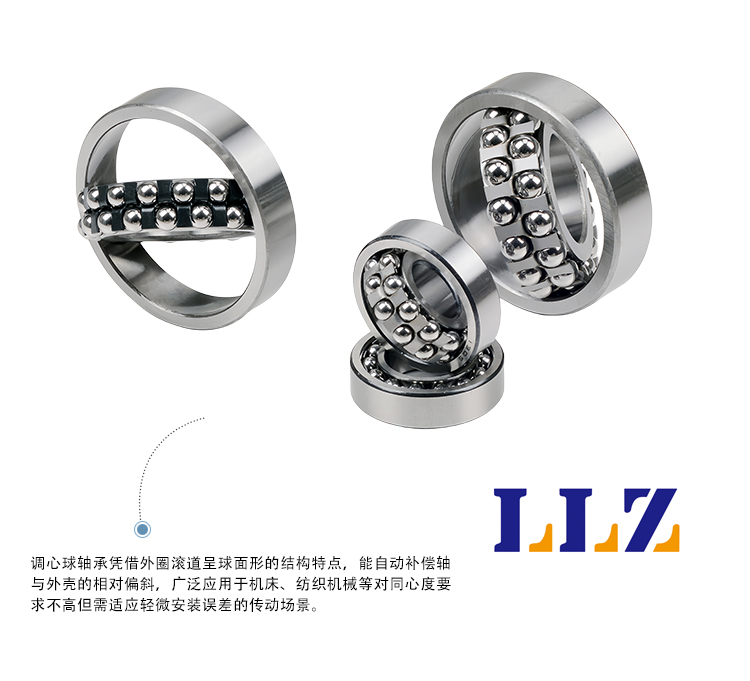 自动补偿偏斜,适应安装误差:其外圈滚道设计为球面形,当轴与轴承座出现同轴度偏差(如安装不同心、轴变形)时,内部钢球可沿球面滚道灵活调整位置,自动补偿偏斜量(通常允许的角偏差可达 2°-3°),避免因同心度问题导致轴承卡死或过早磨损。